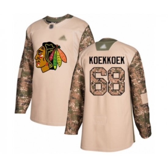 >Men's Chicago Blackhawks #68 Slater Koekkoek Authentic Camo Veterans Day Practice Hockey Jersey