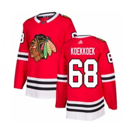 Men's Chicago Blackhawks #68 Slater Koekkoek Authentic Red Home Hockey Jersey