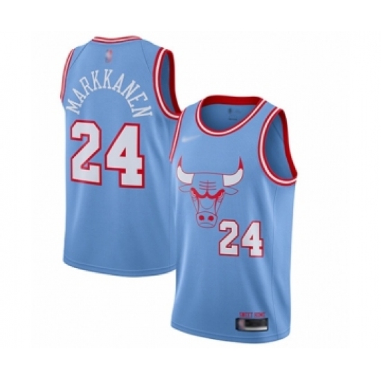 >Men's Chicago Bulls #24 Lauri Markkanen Swingman Blue Basketball Jersey - 2019 20 City Edition