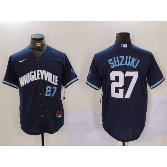 Men's Chicago Cubs #27 Seiya Suzuki Navy City Connect Cool Base Stitched Jersey