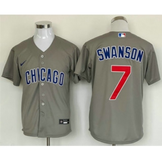 Men's Chicago Cubs #7 Dansby Swanson Grey Stitched MLB Cool Base Nike Jersey