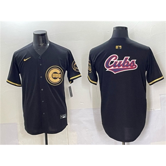 Men's Chicago Cubs Team Big Logo Black Gold Limited Stitched Baseball Jersey