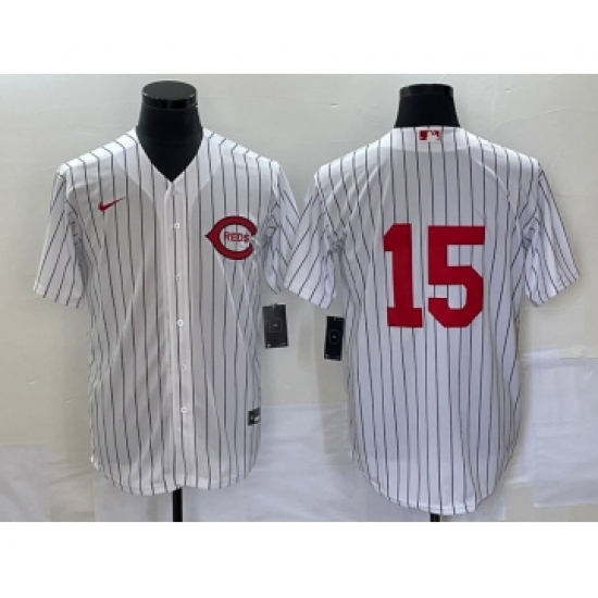 Men's Nike Cincinnati Reds #15 Nick Senzel White Cooperstown Collection Home Stitched Baseball Jersey