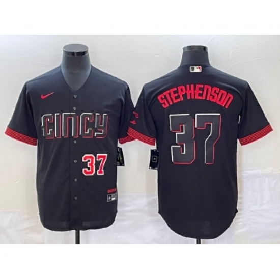 Men's Cincinnati Reds #37 Tyler Stephenson Black 2023 City Connect Cool Base Stitched Jersey1