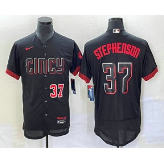 Men's Cincinnati Reds #37 Tyler Stephenson Black 2023 City Connect Flex Base Stitched Jersey 1