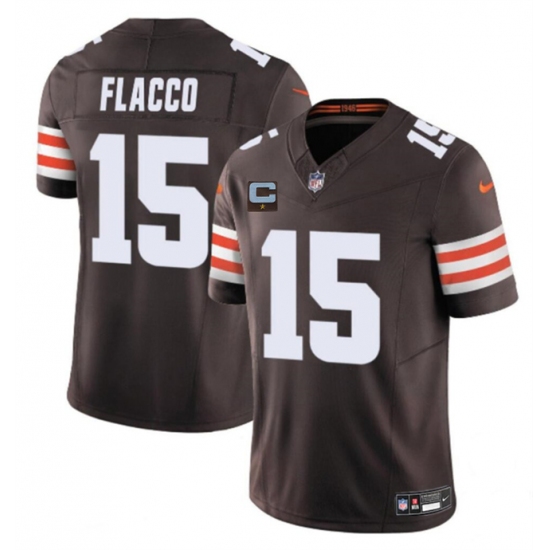 >Men's Cleveland Browns #15 Joe Flacco Brown 2025 F.U.S.E. With 1-Star C Vapor Limited Stitched Football Jersey