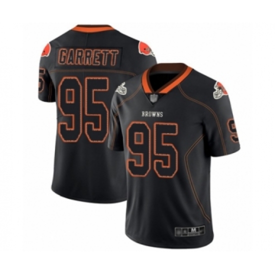 >Men's Cleveland Browns #95 Myles Garrett Limited Lights Out Black Rush Football Jersey