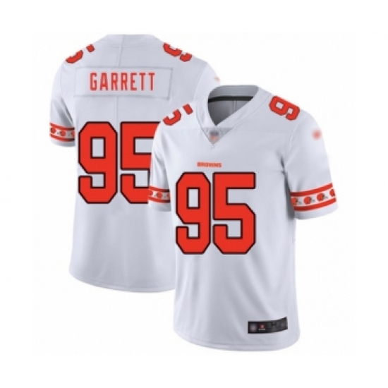 >Men's Cleveland Browns #95 Myles Garrett White Team Logo Fashion Limited Football Jersey