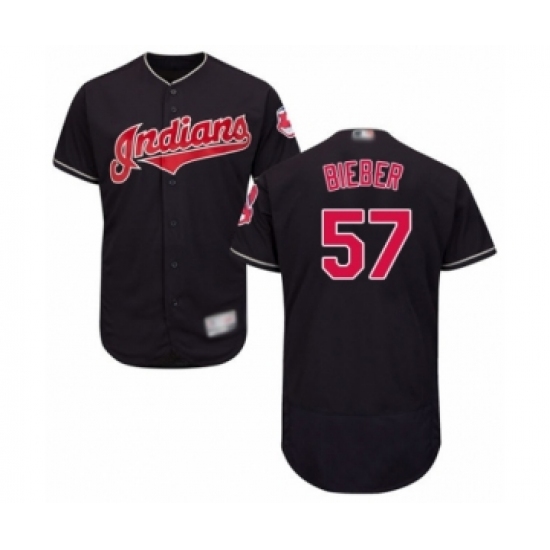 Men's Cleveland Indians #57 Shane Bieber Navy Blue Alternate Flex Base Authentic Collection Baseball Jersey