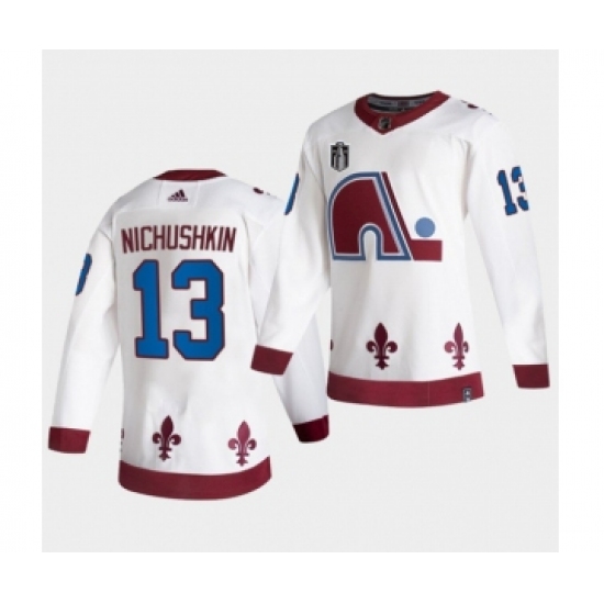 Men's Colorado Avalanche #13 Valeri Nichushkin White 2022 Stanley Cup Final Patch Reverse Retro Stitched Jersey