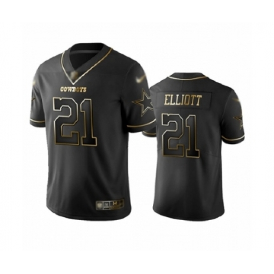 Men's Dallas Cowboys #21 Ezekiel Elliott Black Golden Edition Limited Football Jersey
