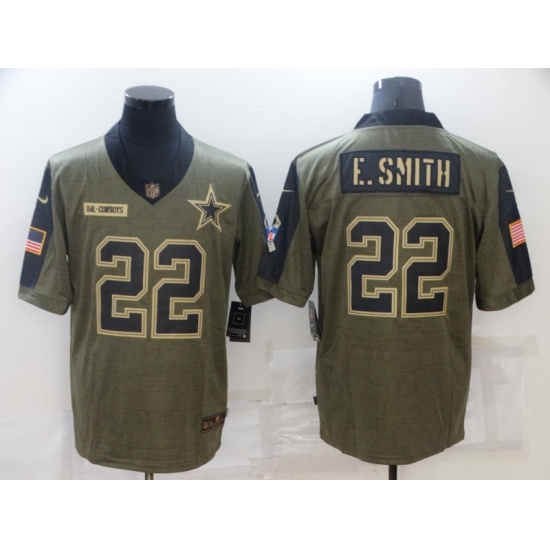 >Men's Dallas Cowboys #22 Emmitt Smith Nike Olive 2021 Salute To Service Limited Player Jersey