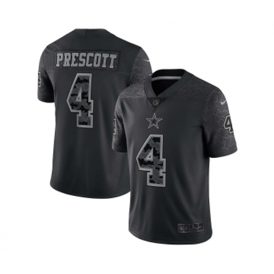 Men's Dallas Cowboys #4 Dak Prescott Black Reflective Limited Stitched Football Jersey
