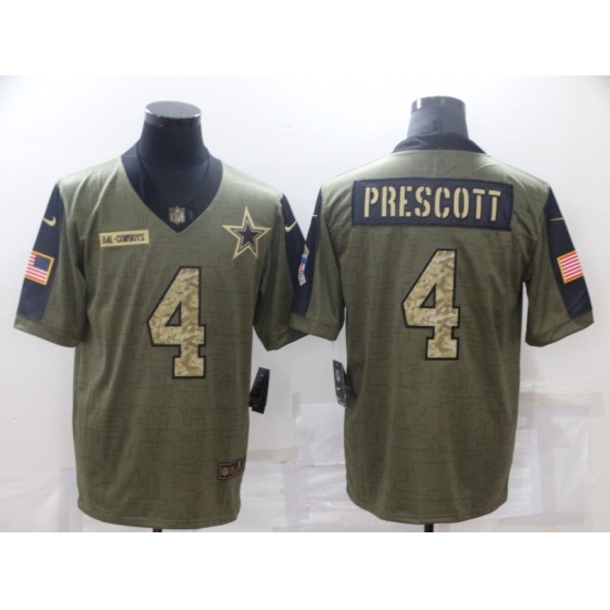 >Men's Dallas Cowboys #4 Dak Prescott Camo 2021 Salute To Service Limited Player Jersey