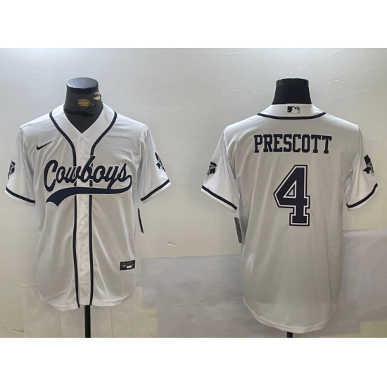 Men's Dallas Cowboys #4 Dak Prescott White With Navy Name Cool Base Stitched Baseball Jersey