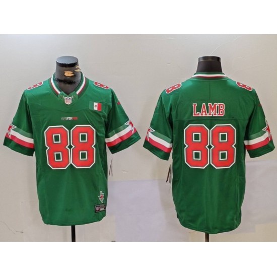 >Men's Dallas Cowboys #88 CeeDee Lamb 2024 Mexico Green FUSE Stitched Jersey