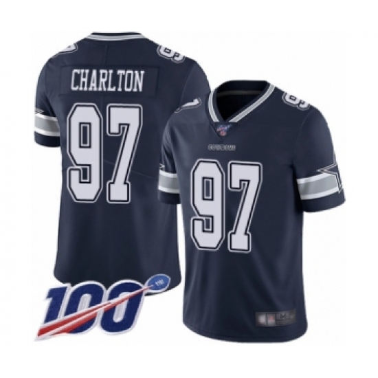 >Men's Dallas Cowboys #97 Taco Charlton Navy Blue Team Color Vapor Untouchable Limited Player 100th Season Football Jersey