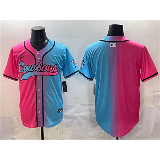 >Men's Dallas Cowboys Blank Pink Blue Limited Stitched Baseball Jersey