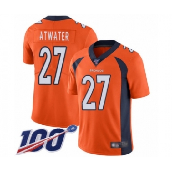 >Men's Denver Broncos #27 Steve Atwater Orange Team Color Vapor Untouchable Limited Player 100th Season Football Jersey