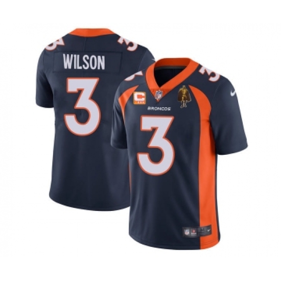 Men's Denver Broncos #3 Russell Wilson Navy With C Patch & Walter Payton Patch Vapor Untouchable Limited Stitched Jersey