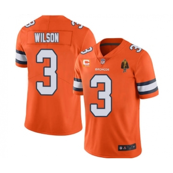 Men's Denver Broncos #3 Russell Wilson Orange With C Patch & Walter Payton Patch Limited Stitched Jersey