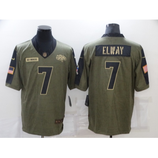 >Men's Denver Broncos #7 John Elway Nike Olive 2021 Salute To Service Limited Player Jersey
