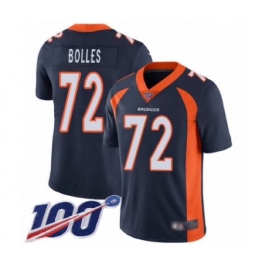 Men's Denver Broncos #72 Garett Bolles Navy Blue Alternate Vapor Untouchable Limited Player 100th Season Football Jersey