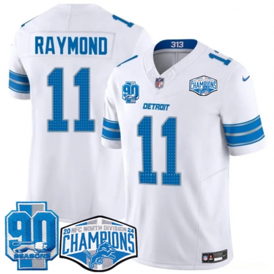 >Men's Detroit Lions #11 Kalif Raymond White 2024 NFC North Champions 90th Anniversary F.U.S.E. Vapor Limited Stitched Jersey
