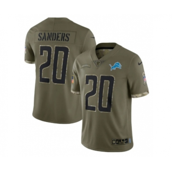 Men's Detroit Lions #20 Barry Sanders 2022 Olive Salute To Service Limited Stitched Jersey