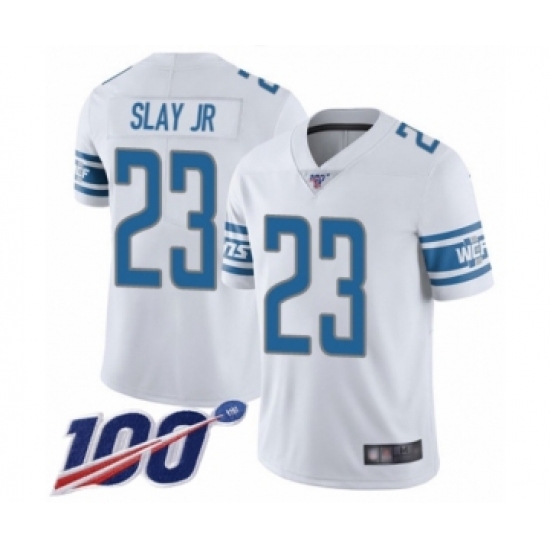>Men's Detroit Lions #23 Darius Slay White Vapor Untouchable Limited Player 100th Season Football Jersey