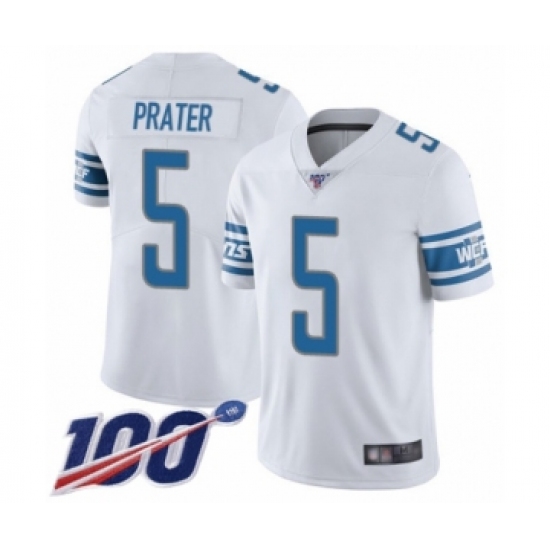 >Men's Detroit Lions #5 Matt Prater White Vapor Untouchable Limited Player 100th Season Football Jersey
