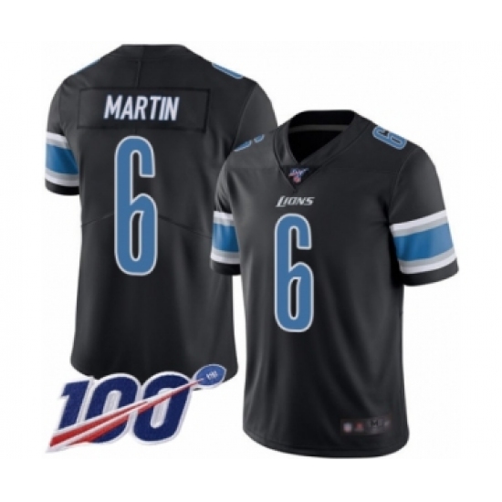 >Men's Detroit Lions #6 Sam Martin Limited Black Rush Vapor Untouchable 100th Season Football Jersey
