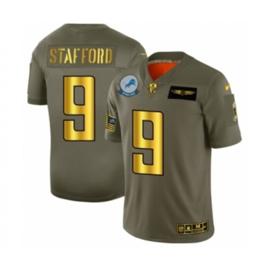 Men's Detroit Lions #9 Matthew Stafford Limited Olive Gold 2019 Salute to Service Football Jersey