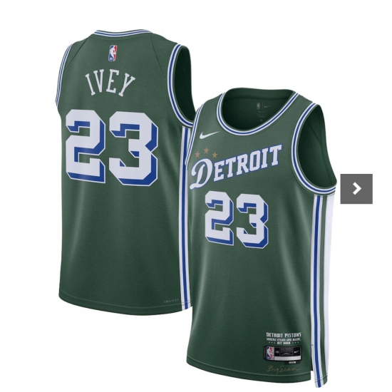 Men's Detroit Pistons #23 Jaden Ivey Green 2023 Draft City Edition Stitched Basketball Jersey