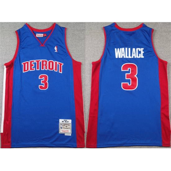 Men's Detroit Pistons #3 Ben Wallace Blue Throwback Stitched Jersey