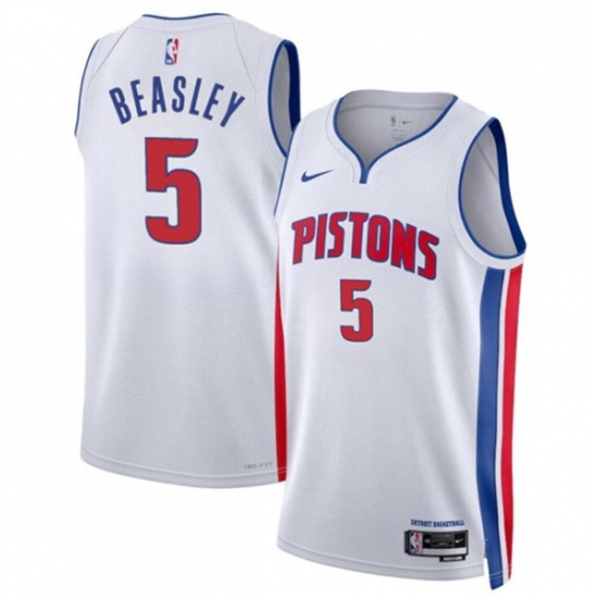 >Men's Detroit Pistons #5 Malik Beasley White 2024 Association Edition Stitched Jersey