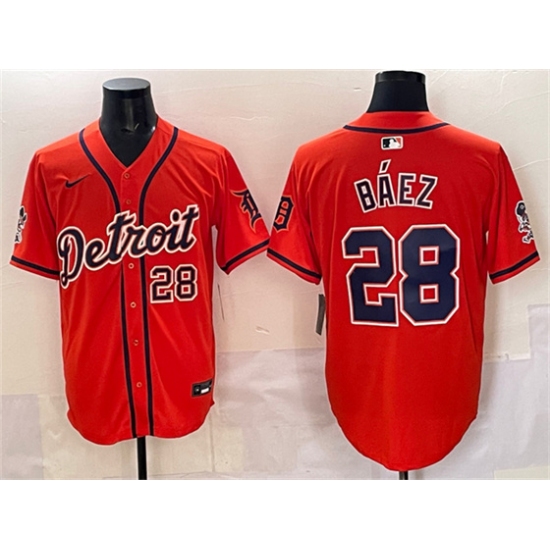 >Men's Detroit Tigers #28 Javier Báez Orange With Vapor Premier Limited Stitched Baseball Jersey