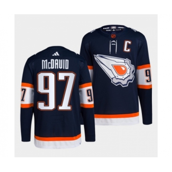 >Men's Edmonton Oilers #97 Connor McDavid Navy 2022-23 Reverse Retro Stitched Jersey