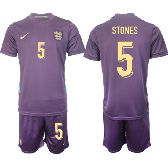 >Men's England #5 John Stones 2024-25 Purple Away Soccer Jersey Suit