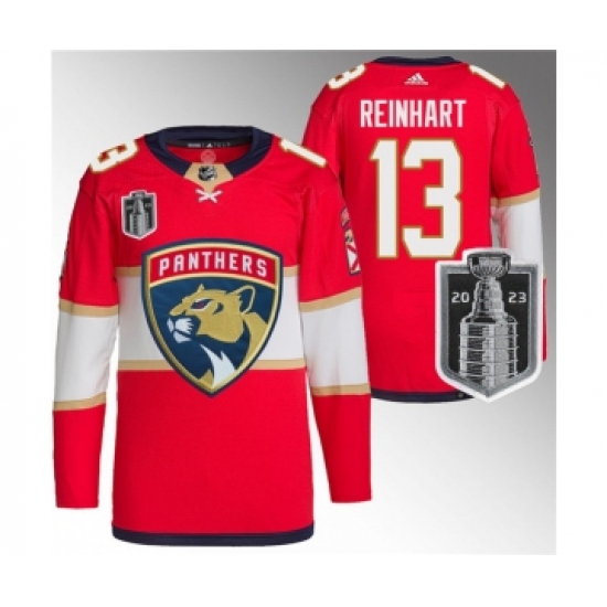 Men's Florida Panthers #13 Sam Reinhart Red 2023 Stanley Cup Final Stitched Jersey