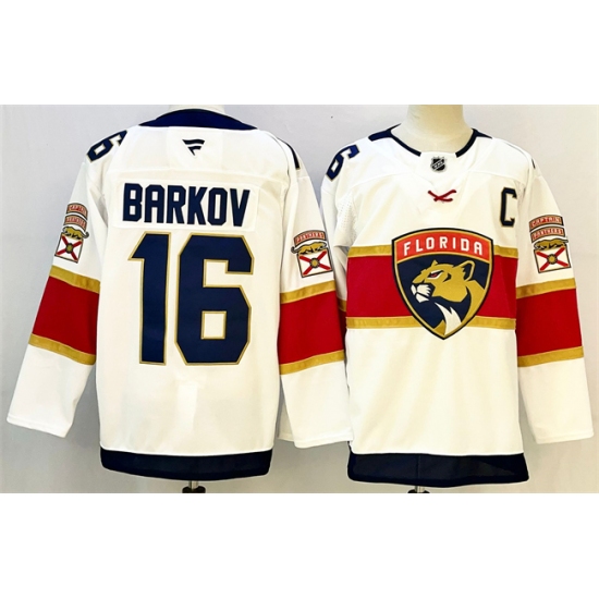 >Men's Florida Panthers #16 Aleksander Barkov White 2024-25 Home With C Stitched Hockey Jersey