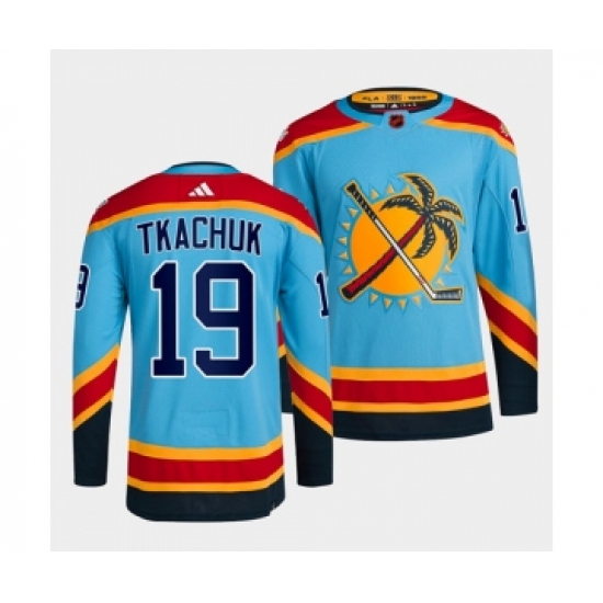 Men's Florida Panthers #19 Matthew Tkachuk Blue 2022 Reverse Retro Stitched Jersey