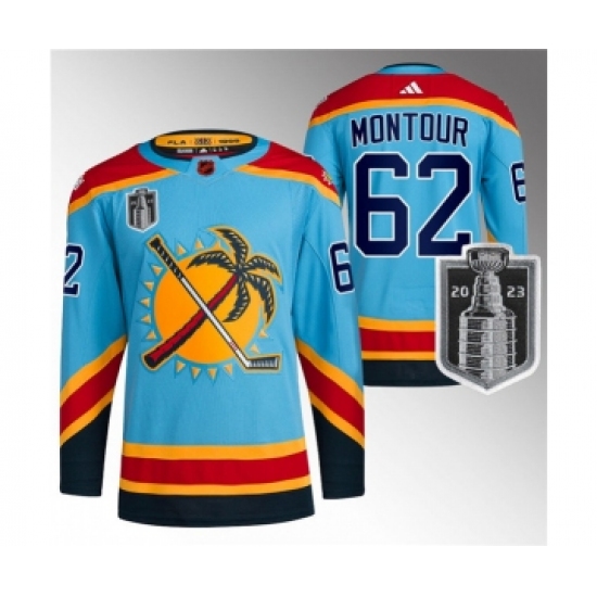 Men's Florida Panthers #62 Brandon Montour Blue 2023 Stanley Cup Final Reverse Retro Stitched Jersey