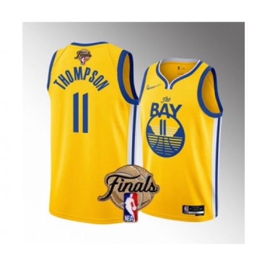 >Men's Golden State Warriors #11 Klay Thompson 2022 Yellow NBA Finals Stitched Jersey