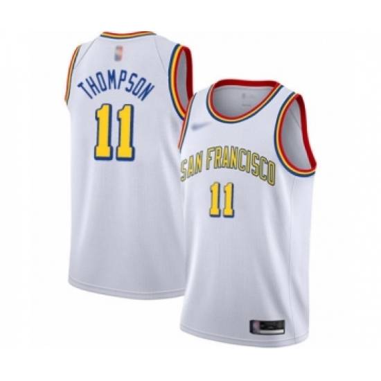 >Men's Golden State Warriors #11 Klay Thompson Swingman White Hardwood Classics Basketball Jersey - San Francisco Classic Edition