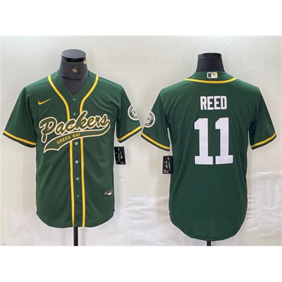 Men's Green Bay Packers #11 Jayden Reed Green Cool Base Stitched Baseball Jersey