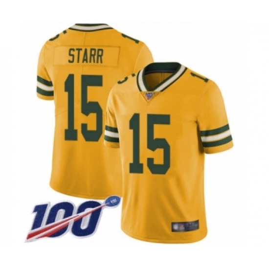 >Men's Green Bay Packers #15 Bart Starr Limited Gold Rush Vapor Untouchable 100th Season Football Jersey