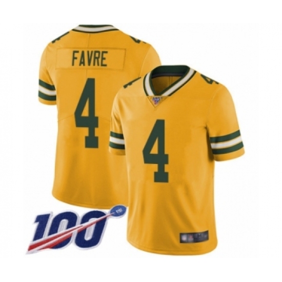 Men's Green Bay Packers #4 Brett Favre Limited Gold Rush Vapor Untouchable 100th Season Football Jersey