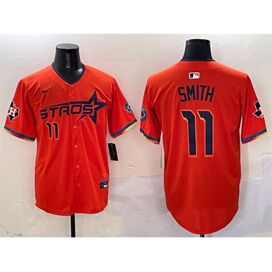 >Men's Houston Astros #11 Cam Smith Orange 2025 City Connect With Texas Limited Stitched Baseball Jersey