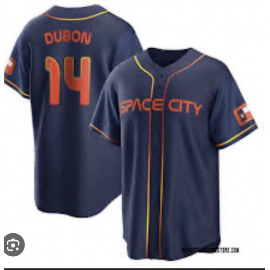 Men's Houston Astros #14 Mauricio Dubon Navy Blue City Connect Cool Base Stitched Jersey